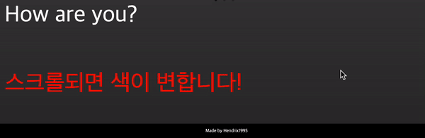 import React, { useState } from "react"; const [scrollPosition, setScrollPosition] = useState(0); function Page { <div> <div>스크롤되면 색이 변합니다!</div> </div> }
