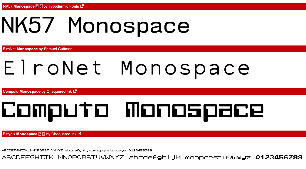 고정폭(모노스페이스)의 예시. 전부 같은 가로 크기를 가지고 있는 것을 알 수 있다.