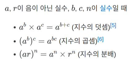 '고등학교' 에서 배운 지수법칙(나무위키에서 캡쳐했다)