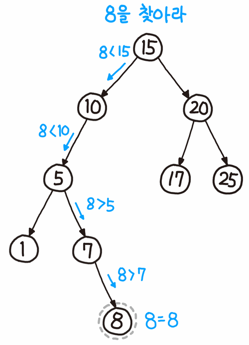 위의 예시에서 보면, 15, 10, 5, 1, 7, 8, 20, 17, 25의 결과가 나온다.
